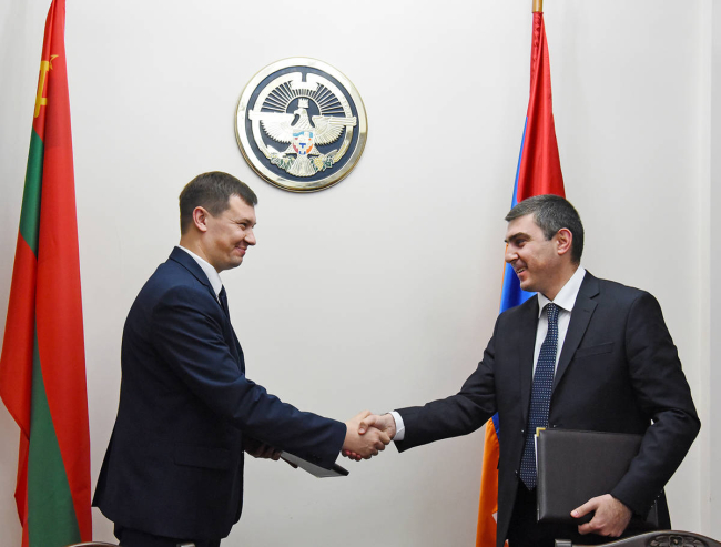 Правительства Приднестровья и Арцаха учредили торговые представительства. Соответствующее соглашение подписано в столице Нагорно-Карабахской Республики. Стороны выразили уверенность, что данная договоренность - готовность обоих государств к наращиванию взаимовыгодных контактов в торгово-экономической сфере и дальнейшему укреплению стратегического сотрудничества.