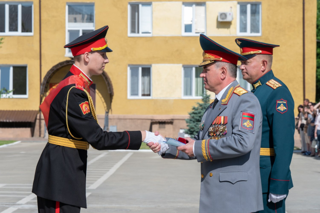 Поздравляя выпускников в своем телеграм-канале, Президент Вадим Красносельский пожелал им сохранить в душе юношескую смелость и увлеченность. Сам глава государства вручил аттестаты, нагрудные знаки и медали семикурсникам Тираспольского суворовского училища. Это уже четвертый его выпуск.