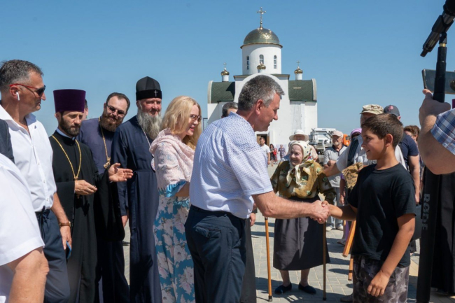 На строящемся православном храме в Первомайске воздвигли крест. В обряде его освящения и установления принял участие и Президент Вадим Красносельский с супругой. Храм строится под патронажем главы государства.