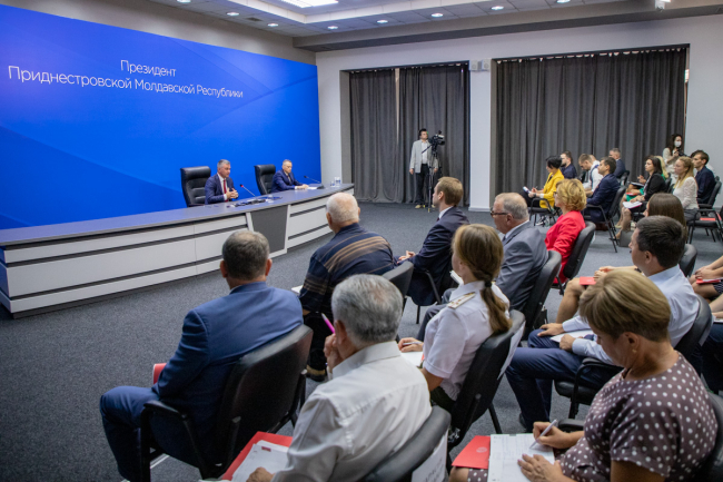 Тирасполь, 30 августа. /Новости Приднестровья/. Главным событием уходящей недели стала традиционная праздничная пресс-конференция Президента ПМР Вадима Красносельского, проведённая в преддверии Дня Республики. Из-за пандемии COVID-19 количество участников мероприятия сократили до минимума.