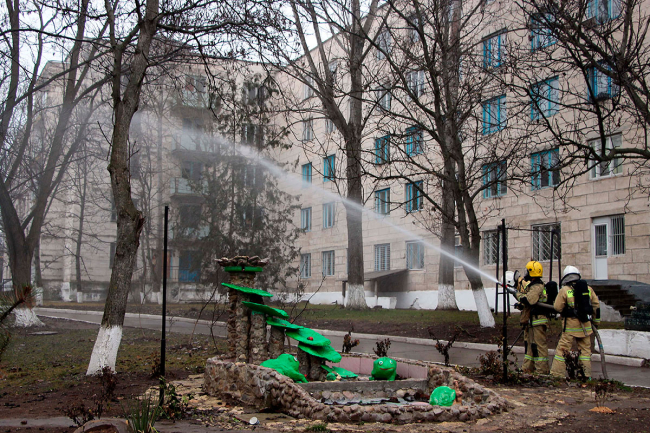 Согласно легенде, утром, во время занятий, в одной из комнат общежития случился пожар: загорелся электрокамин. В сильном дыму затерялся человек. Пожарные обнаружили условного пострадавшего на 2-м этаже. Через окно его спустили на землю с помощью спасательной верёвки и передали врачам. Очаг возгорания быстро потушили.