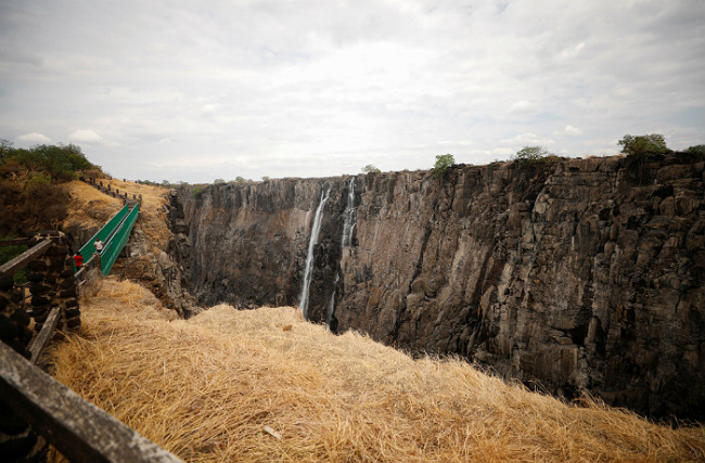 Привлекающий миллионы туристов в Замбию и Зимбабве водопад превратился в струйку из-за сильнейшей засухи.