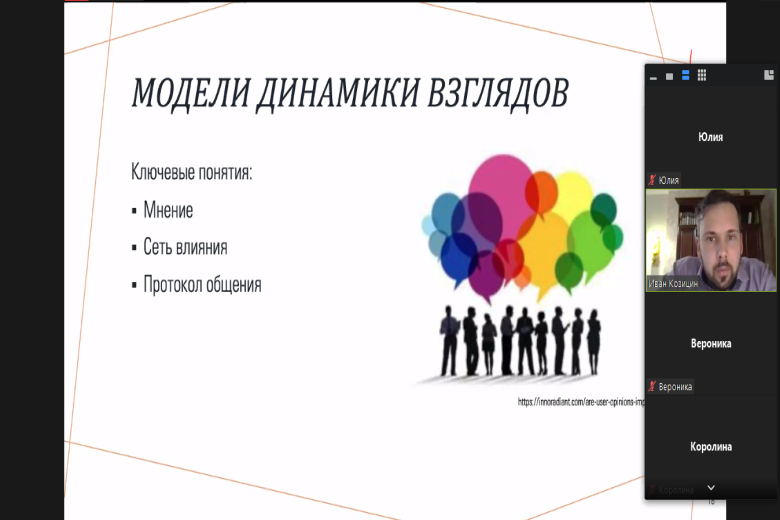 «Это модель очень простая, но вместе с тем она была эмпирически подтверждена во многих лабораторных исследованиях, в рамках которых следили, как люди меняют своё мнение. Более того, эта модель в какой-то степени провалидирована на онлайновых социальных сетях. Учёные проводили эксперименты, они смотрели, как меняется мнение людей, и сопоставляли данную динамику с моделью Дегроота. Оказалось, что она, действительно, неплохо описывает реальные процессы», – рассказал Иван Козицин.