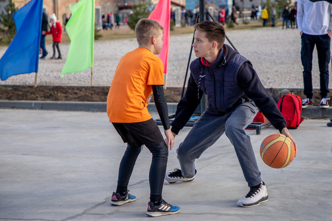 Так, спортивная зона была разделена на секции, представленные разными видами спорта: футболом, волейболом, уличным стритболом, настольным теннисом, голболом, боксом.