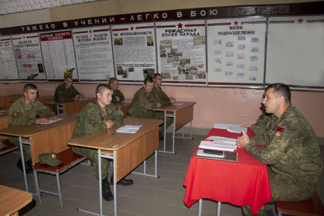 Тирасполь, 18 октября. /Новости Приднестровья/. В рамках итоговой проверки в ряде воинских частей сегодня прошли контрольные занятия по общественно-государственной подготовке. Ход занятия в одном из подразделений проконтролировал заместитель министра обороны подполковник Александр Доников.