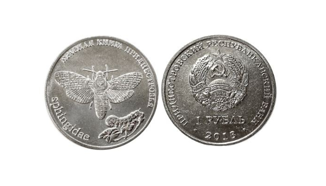 Тирасполь, 26 октября./Новости Приднестровья/. С сегодняшнего дня введены в обращение памятные монеты Приднестровского республиканского банка из недрагоценных металлов достоинством 1 рубль «Бабочка Адамова голова» серии «Красная книга Приднестровья. Фауна».