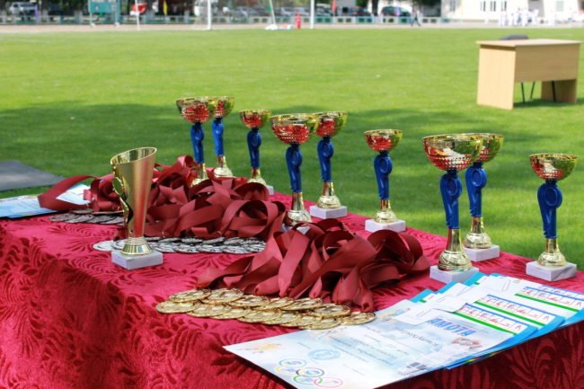 На футбольном поле стадиона состоялся спортивный конкурс «Папа, мама, я – спортивная семья!», а также борьба трынта, победитель получил живого барана.