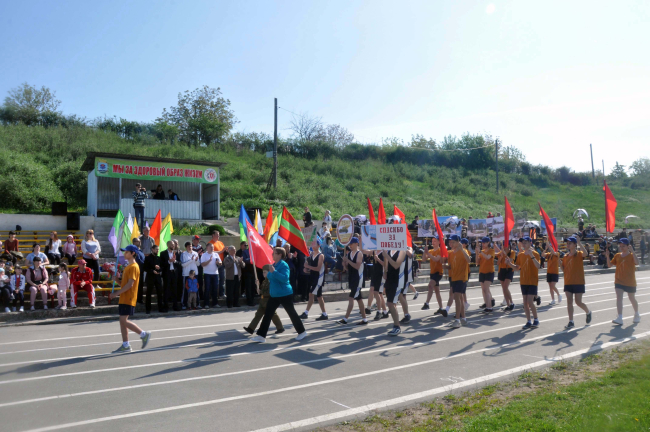 Открыло культурно-спортивную программу праздничного дня шествие команд-участниц. Колонны образовательных организаций в этом году объединили общей тематикой – 75-й годовщиной освобождения Слободзейского района от немецко-фашистских захватчиков.