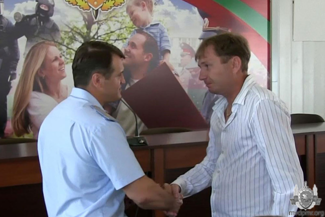 Тирасполь, 13 июня. /Новости Приднестровья/. Министр внутренних дел Руслан Мова вручил медаль «За спасение жизни» 42-летнему жителю Днестровска Сергею Коробейникову. Рискуя собственной жизнью, мужчина вынес из задымлённой квартиры своих соседей 3-летнего мальчика и его прабабушку. К тому времени женщина, надышавшись продуктами горения, уже находилась без сознания, сообщает пресс-служба МВД ПМР.