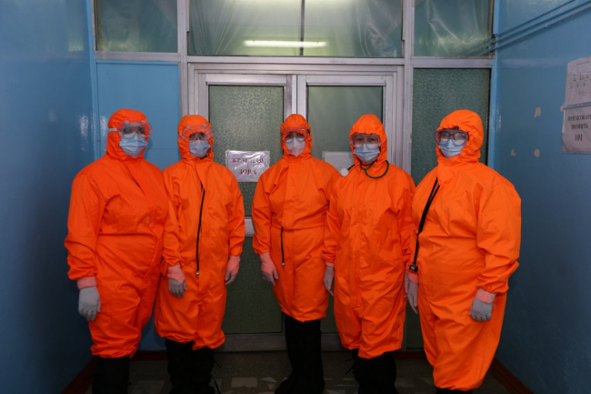 В COVID-госпитале работают 75 сотрудников. В красной зоне они проводят по 24 часа в сутки с перерывами на завтрак, обед и ужин.