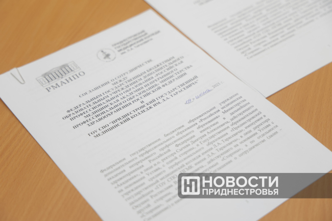 Тирасполь, 14 июля. /Новости Приднестровья/. Приднестровский государственный медицинский колледж им. Л. А. Тарасевича и Российская медицинская академия непрерывного профессионального образования подписали соглашение о сотрудничестве. Теперь студенты колледжа смогут проходить курсы повышения квалификации и профессиональной переподготовки на базе одного из крупнейших медицинских образовательных учреждений РФ.