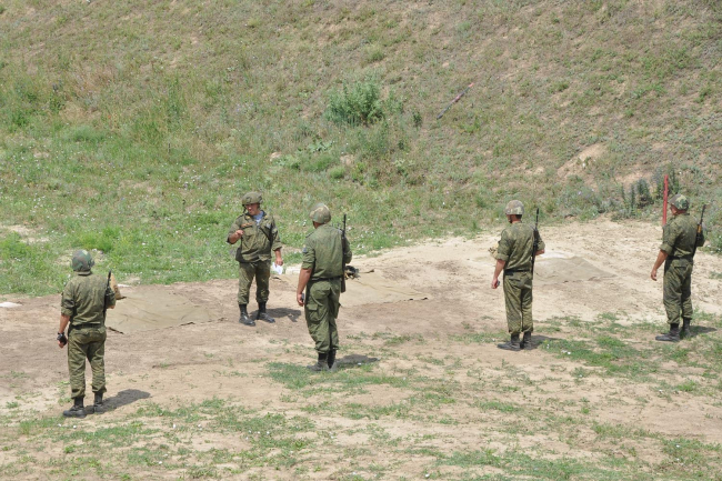 Сегодня военнослужащие упражнялись в стрельбе из автомата Калашникова и вождении колесной техники