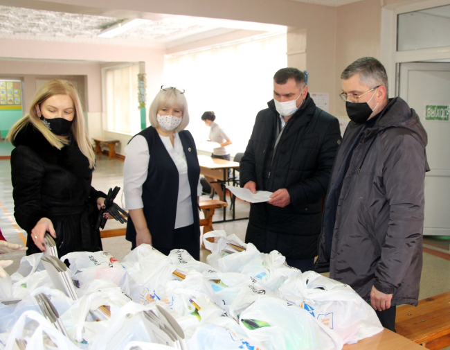 Процес выдачи канцелярских принадлежностей в гимназии проинспектировал глава города и района Виктор Тягай. Здесь наборы подготовили для 28 учащихся из 19 семей. Канцтовары классифицированы по трём комплектам - для учеников начальной школы, средних и старших классов.