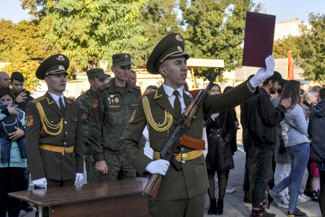Тирасполь, 6 октября. /Новости Приднестровья/. На территории одной из воинских частей Министерства обороны прошла торжественная церемония принятия Военной присяги военнослужащими Тираспольского гарнизона. Молодые солдаты поклялись в верности Родине.