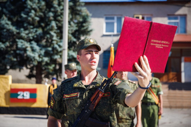 Тирасполь, 11 июля. /Новости Приднестровья/. Молодые военнослужащие Тираспольского гарнизона и студенты ПГУ им. Т. Г. Шевченко, обучающиеся в Военном институте, присягнули на верность Родине.