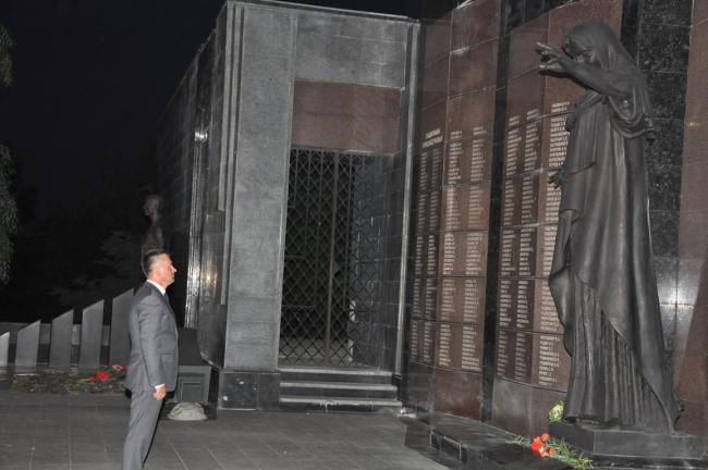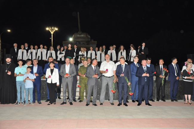 Участники акции несли к плитам мемориала живые цветы и лампадки. Почтил память жертв самой кровопролитной войны в истории человечества и президент Вадим Красносельский.
