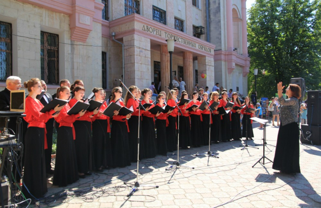 Перед Домом книги организации профессионального образования Приднестровья демонстрировали успехи своих студентов. Также любой желающий мог попробовать себя в роли хирурга или измерить давление, либо почувствовать, каково это быть коммерческим директором. А чтобы знакомиться с широким спектром специальностей горожанам было интересней, студенты подготовили концертную программу.