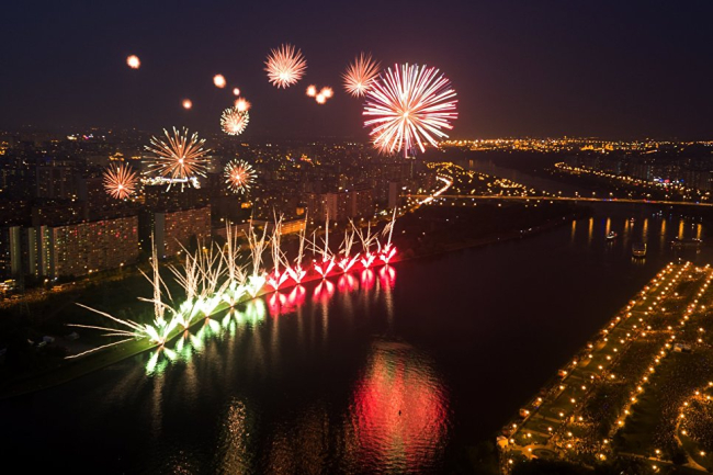 Команда Китая получила приз зрительских симпатий. Она начала свое очаровательное выступление с полета «фонариков» под традиционные народные мелодии, переходящие в «Подмосковные вечера» на китайском. Затем салют разукрасил ночное небо всеми цветами радуги.