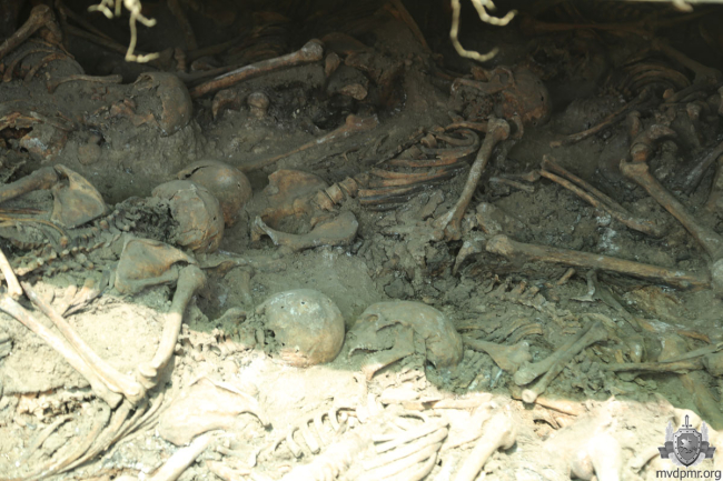 Как сообщила пресс-служба МВД ПМР, с июня раскопали 10 расстрельных ям и одну – с одеждой, обувью и другими вещами людей. Из земли извлекли порядка 1100 скелетов.