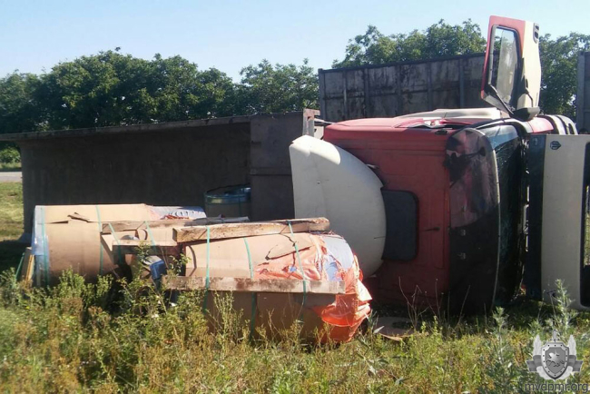 На трассе вблизи села Малаешты перевернулся грузовик