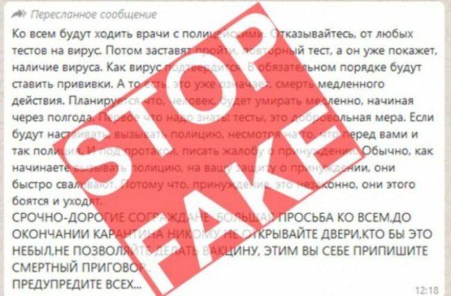 В социальной сети женщина распространила материал, призывающий граждан не открывать двери врачам и правоохранителям, а также отказываться от тестирования на наличие вирусной инфекции.