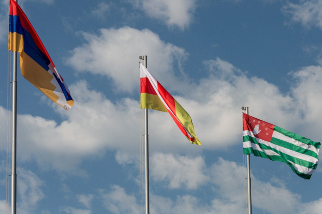 Сегодня впервые над главной площадью приднестровской столицы были подняты государственные флаги Республики Абхазия, Республики Южная Осетия и Республики Арцах.