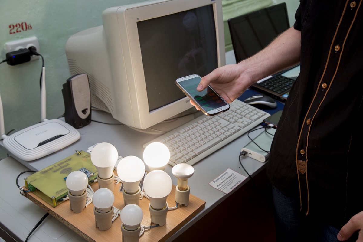 Разработчик и кодировщик робота – Александр Процак. К слову, 15-летний школьник создал ещё и мобильное приложение для управления системой «Умный дом». На примере юный инженер показал, как легко можно управлять выключателями в доме.