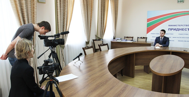 На вопросы режиссёра-документалиста Штеффи Вурстер ответил замминистра иностранных дел ПМР Дмитрий Паламарчук