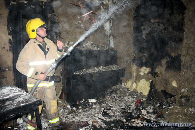 В течение часа двум пожарным расчётам удалось укротить огонь. Комната площадью 20 кв. м выгорела полностью. Спасатели сумели уберечь жилое имущество соседей, сообщает пресс-служба МВД ПМР.