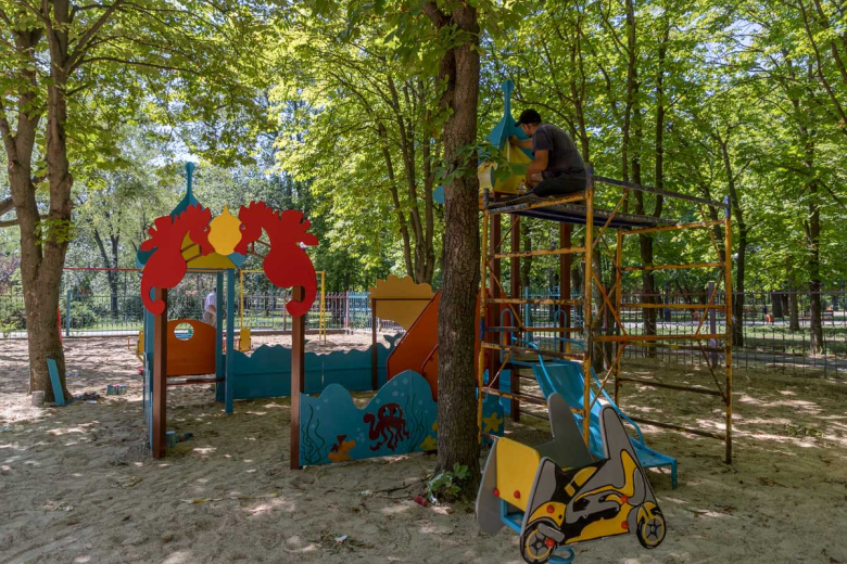 «Сделали новую площадку, новые аттракционы. Сейчас вот наводят последние штрихи, устанавливают последний инвентарь, останется только разобраться с забором. Все остальные работы закончат уже к концу этой недели», - рассказал Николай Обручков.