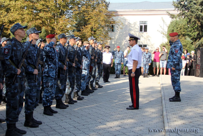 Тирасполь, 26 августа. /Новости Приднестровья/. В Специальной моторизованной войсковой части Министерства внутренних дел состоялась торжественная церемония приведения молодого пополнения к Военной присяге. Мероприятие началось на плацу СМВЧ с выноса знамени. Оттуда во главе с первым заместителем министра внутренних дел Сергеем Левинским и командиром подразделения Денисом Георгицей личный состав и новобранцы части в пешем порядке выдвинулись к мемориалу Славы села Парканы.