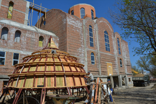 Также сегодня архиепископ Тираспольский и Дубоссарский Савва посетил столичный Крестовоздвиженский храм, где полным ходом идет работа по обшивке центрального купола и производятся подготовительные работы по заливке отмостки церковного здания.