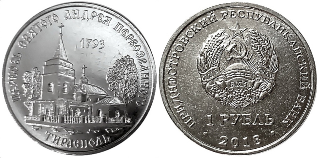 Тирасполь, 21 сентября. /Новости Приднестровья/. Приднестровский республиканский банк с сегодняшнего дня ввел в обращение памятные монеты из недрагоценных металлов достоинством 1 рубль «Церковь св. Андрея Первозванного г. Тирасполь» серии «Православные храмы Приднестровья». Тираж – 50 тысяч штук, сообщается на сайте ПРБ.