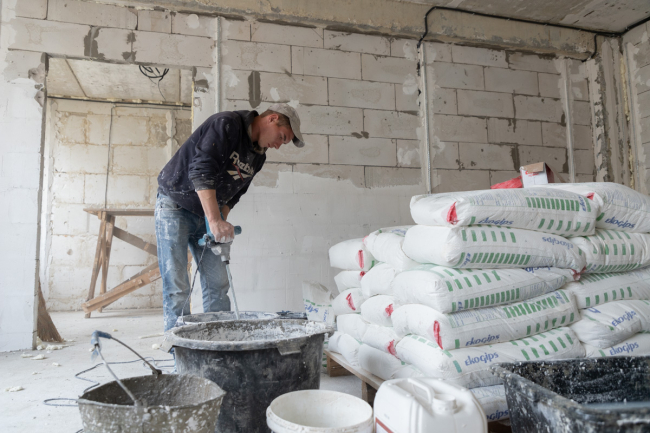 «Мы делаем электрику, оба этажа почти готовы, монтируем сантехнику, систему отопления. Также проводим отделочные работы – шпатлюем простенки, заливаем полы. После этого все силы бросим на полы на первом этаже и на отделку стен», – рассказал директор строительной компании «Союзинвест» Евгений Друзенко.