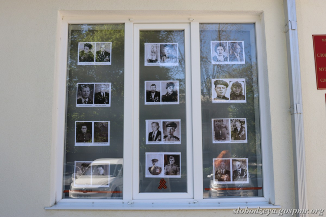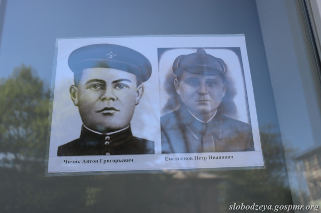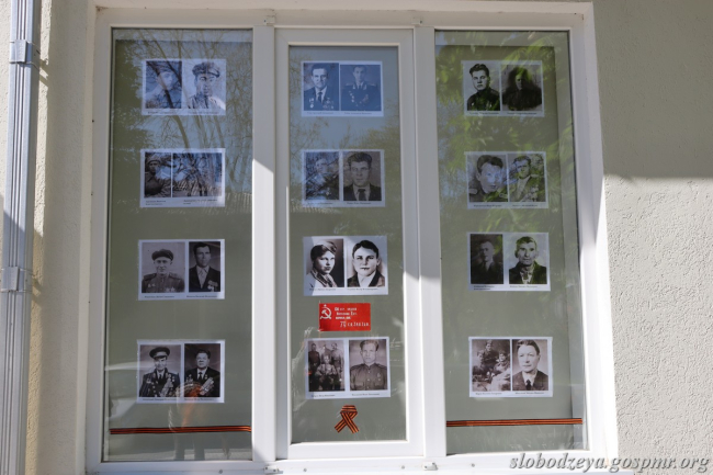 Из «Окон Победы» смотрят на слободзейцев герои Советского Союза Сергей Иванович Болгарин из села Коротное и Федор Антонович Угначев из Слободзеи, полные кавалеры ордена Славы Антон Григорьевич Чичик из села Карагаш и Петр Иванович Емельянов из Слободзеи.