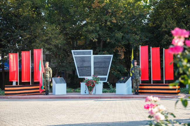 Бендеры, 24 августа. /Новости Приднестровья/. Накануне в Бендерах отметили 76-ю годовщину освобождения города от фашистских захватчиков. В этот день к гранитным плитам Мемориала Воинской Славы, Вечному огню и памятным знакам руководство города и благодарные бендерчане возлагают живые цветы, сообщает пресс-служба Минобороны.