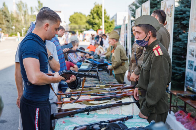 Вторая часть праздничных мероприятий развернулась в центре города – на площади Освобождения. Главной локацией стал «Солдатский привал». Для жителей и гостей города был организован праздничный концерт, тематические фотозоны, выставки и мастер-классы. Все желающие смогли «пройти» дорогами войны и Победы, сфотографироваться на память у военного блиндажа и подкрепиться гречкой и сладким чаем из полевых кухонь Министерства обороны. А заодно насладиться выступлением роты Почетного караула и оркестровой музыкой.