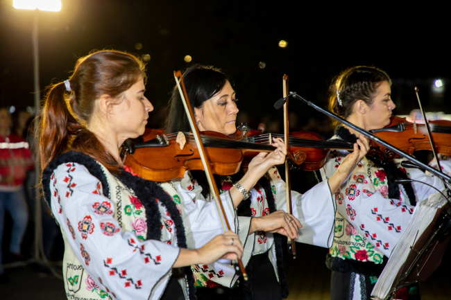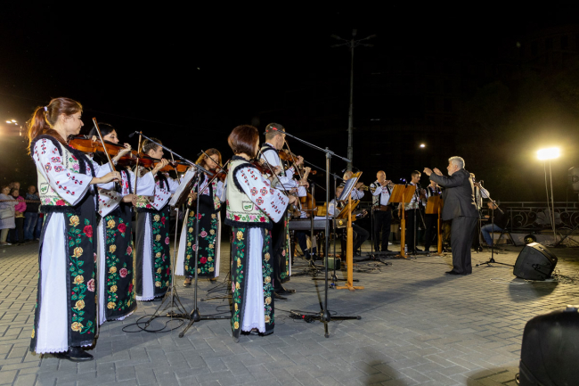 Открыл концертную программу номер «Мэ мындреск ку лэутарий», затем на смену ему пришла инструментальная композиция «Хора луй кучук». Соло на трубе исполнил Иван Весте. Солистка оркестра - народная артистка ПМР Валентина Урсуляк исполнила песню «Ть-ам висат асярэ татэ», посвященную всем отцам.