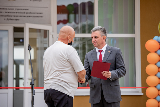 Дубоссары, 4 сентября. /Новости Приднестровья/. В Дубоссарах сегодня торжественно открыли реабилитационный центр для детей-инвалидов. В церемонии приняли участие Президент Вадим Красносельский и председатель Правительства Александр Мартынов.