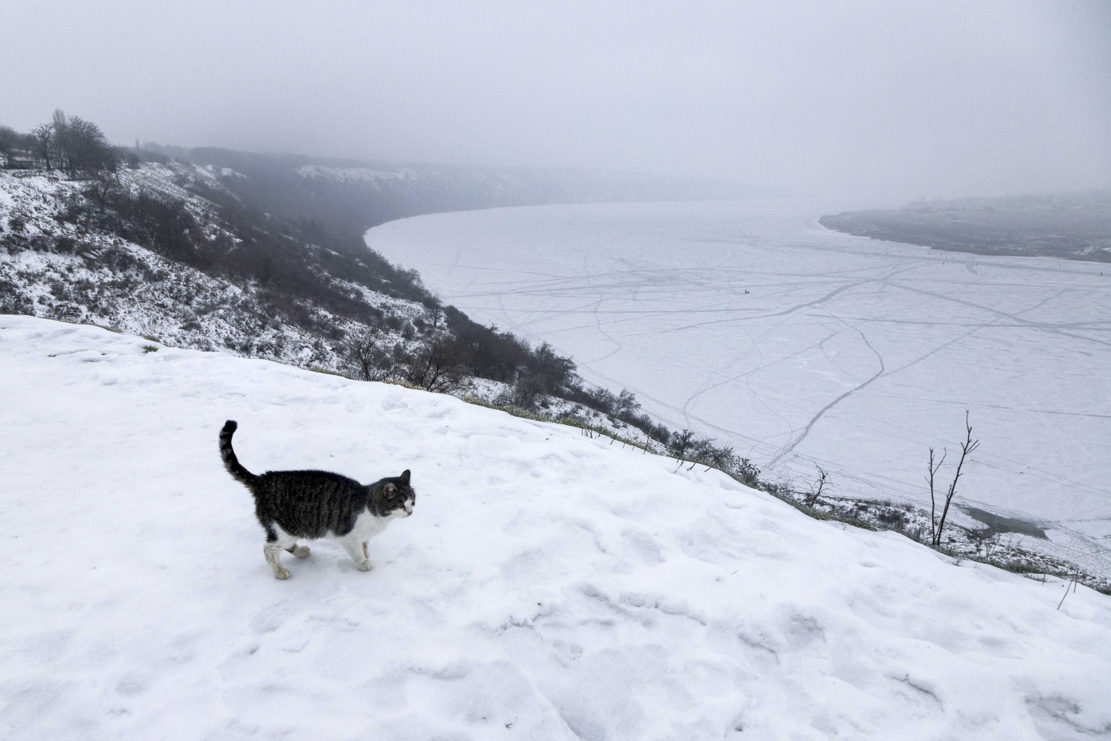 Замерзшая река изменилась до неузнаваемости. Снежный простор, молчаливо застывший Днестр удивляют даже окрестных обитателей…