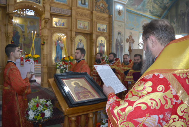 По окончании богослужения владыка Савва вручил каждому присутствующему в храме иконку с изображением лика Святого мученика Стефана Слободзейского.