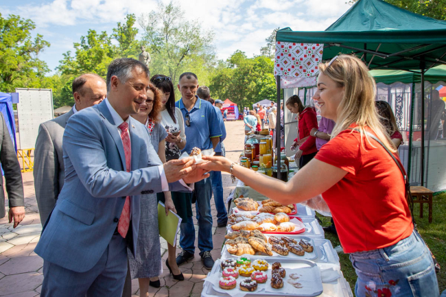 Ознакомиться с продукцией приднестровских товаропроизводителей, приобрести понравившиеся изделия и товары, послушать концертную программу, подготовленную творческими коллективами столицы, и просто отдохнуть на свежем воздухе в тени деревьев сегодня пришли сотни горожан и гостей столицы.