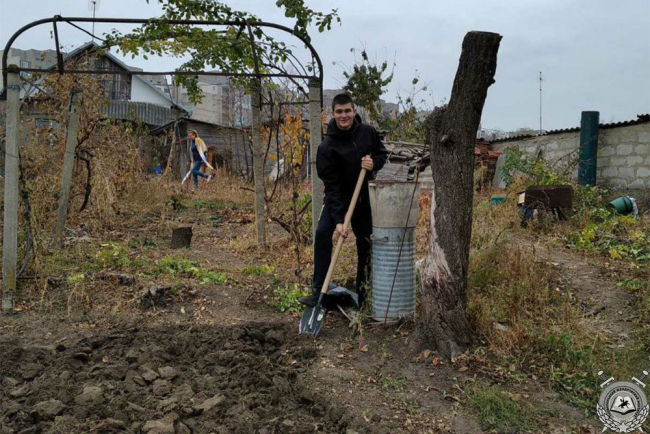 После перенесённой болезни ветеран прикован к постели. Мужской работы в частном доме всегда много. В минувшие выходные курсанты первого курса вместе со своим куратором помогали справиться с делами по хозяйству.