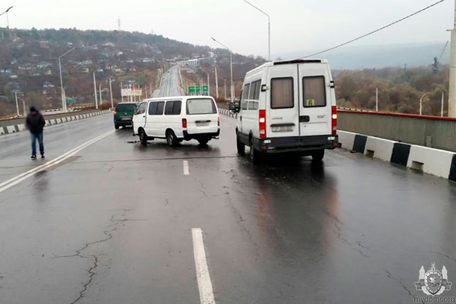 Напомним, ранее в Рыбницком районе произошли две аварии с участием маршрутных такси. Третья, которая обошлась без пострадавших, случилась в 09:10 в Рыбнице на путепроводе по ул. Мицкевича. Водитель Peugeot в непростых погодных условиях не учёл состояние дорожного покрытия, не выбрал безопасную дистанцию и совершил столкновение со следовавшим впереди автомобилем Toyota. От удара данный автомобиль отбросило на маршрутное такси №6, двигавшееся справа в попутном направлении.