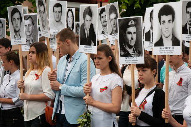 Во главе Республиканского марша памяти по подобию «Бессмертного полка» шли юнармейцы и кадеты с портретами погибших защитников Бендер. Колонна прошла по центру города от Площади Освобождения до Мемориала Памяти и Скорби, где состоялся митинг-реквием.