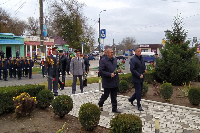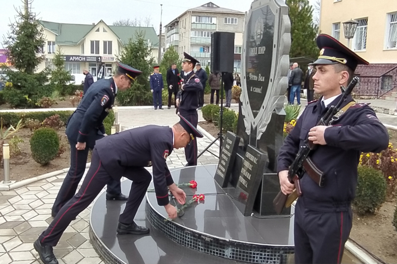 В Рыбнице торжественное мероприятие сегодня началось с возложения цветов к памятному знаку сотрудникам милиции, погибшим при исполнении служебного долга. Память о них почтили минутой молчания.