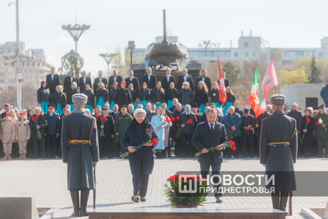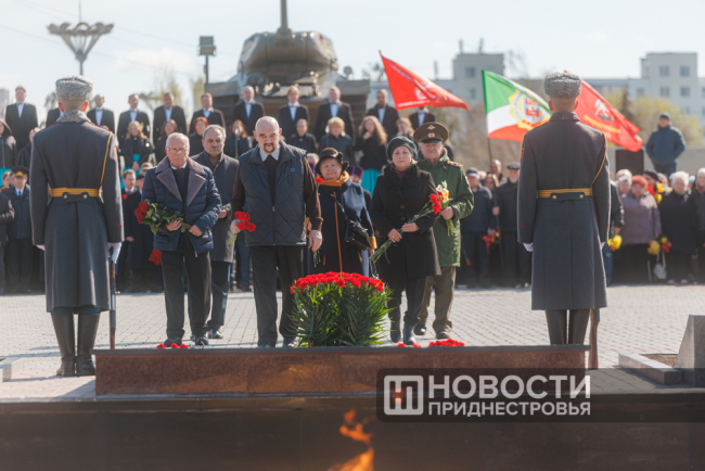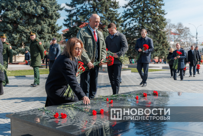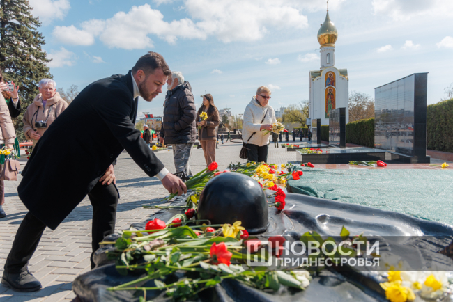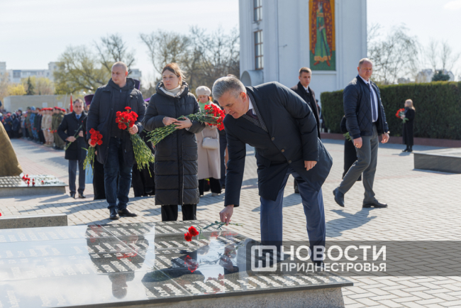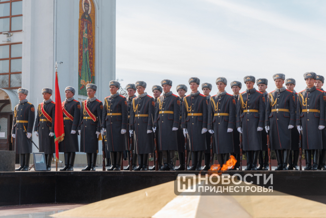 Тирасполь, 12 апреля. /Новости Приднестровья/. 81-ю годовщину освобождения Тирасполя от фашистской оккупации столичный Мемориал Славы встретил обновлённым. Реконструкция одного из важнейших памятников истории Приднестровья началась в июле 2024 года. За 11 месяцев здесь была отреставрирована чаша Вечного огня, установлены информационно-художественные плиты с батальными сценами, а также нанесены 1 340 фамилий тираспольчан, погибших на фронтах Великой Отечественной войны.