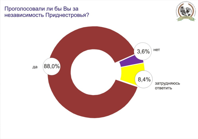 Согласно результатам исследования общественного мнения, проведённого Факультетом общественных наук ПГУ, 88% опрошенных вновь проголосовали бы за независимость Приднестровской Молдавской Республики. Если бы к приднестровцам обратились с вопросом о предпочтительной стране для присоединения, то 94,1% выбрали бы Российскую Федерацию.