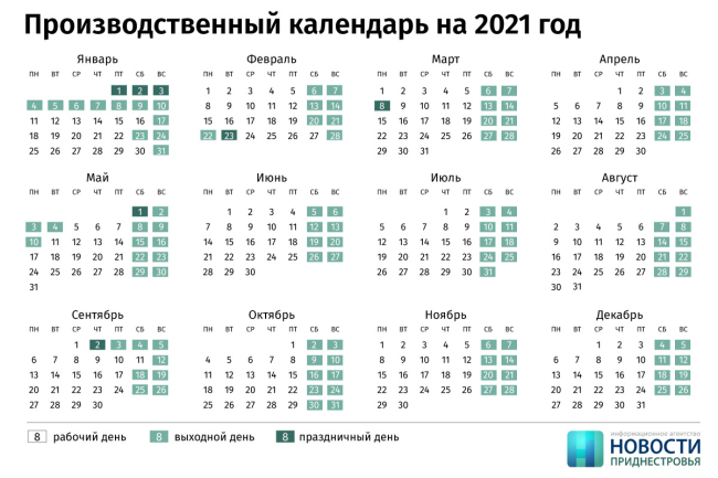 Праздничные и выходные дни в 2021 году в Приднестровье