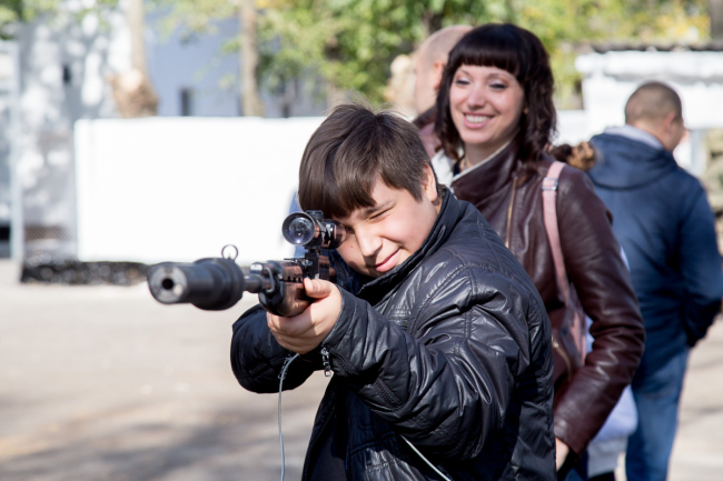 Центром притяжения мальчишек и девчонок был тир, где ребята оттачивали свою меткость в стрельбе из разных видов пневматического оружия, а также импровизированное минное поле, на котором предлагалось в сопровождении сапёра и в полной амуниции найти взрывоопасный объект.